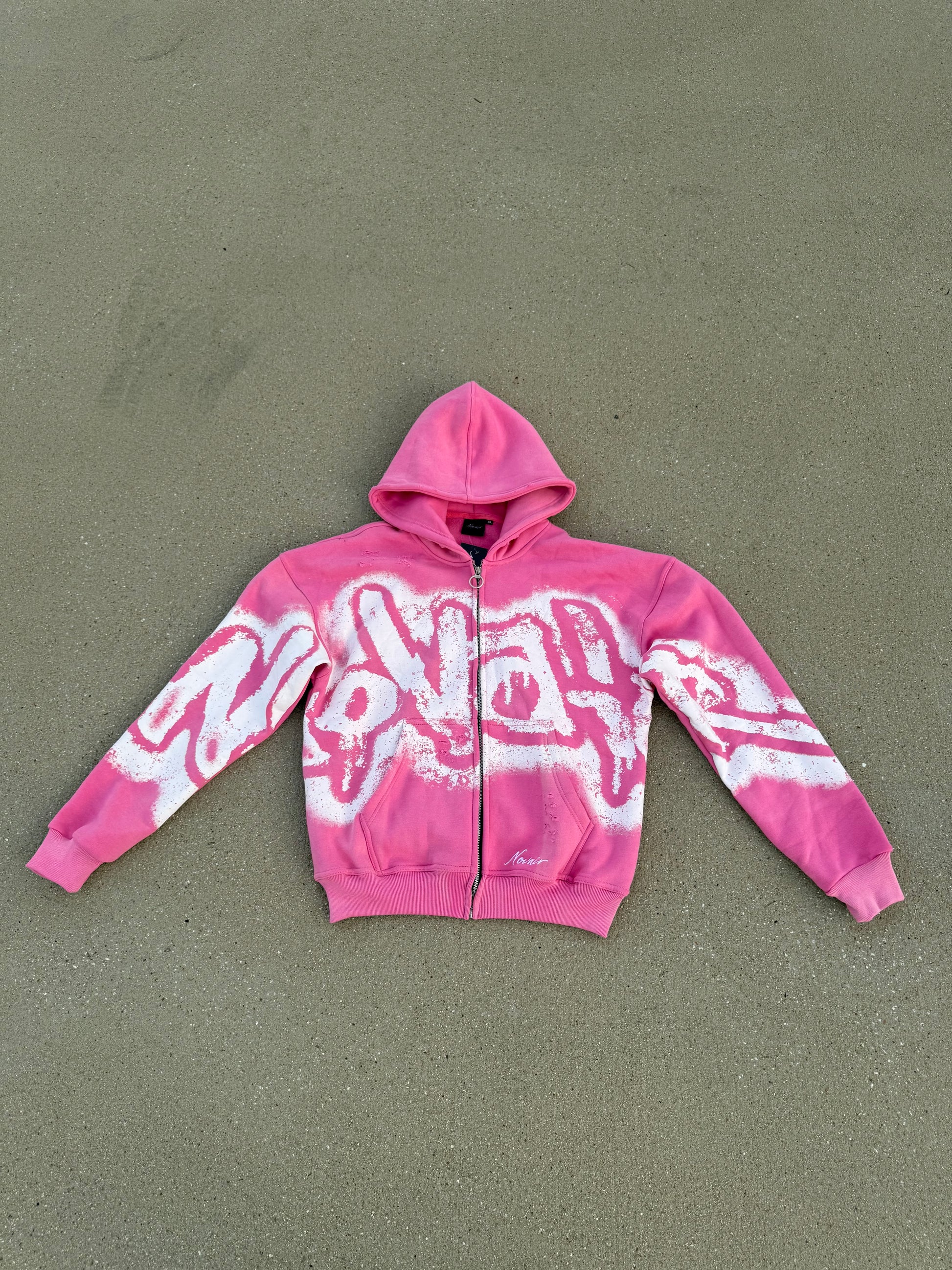 Pop out loud but stay cozy. The Bubblegum Pink zip-up is for the bold ones — distressed in all the right places and finished with Novair’s white vintage lettering that hits perfectly against the soft pink base. Heavy feel, lightweight confidence.